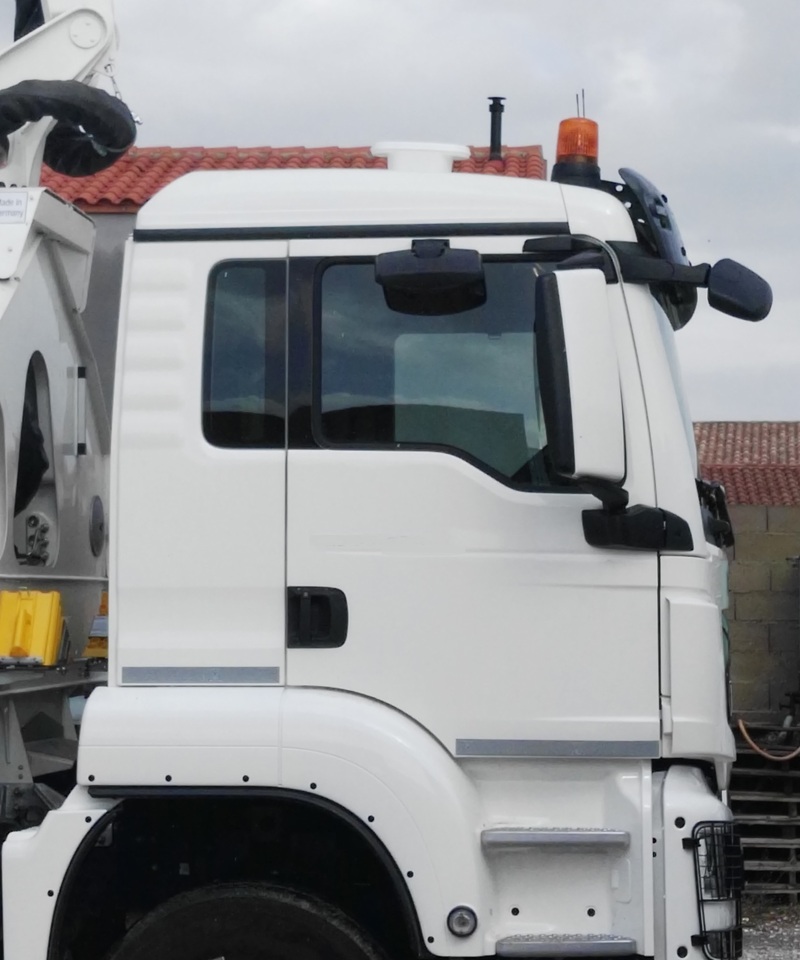 Système de prévention qui, grâce à une seule antenne de détection sur le toit de la cabine du véhicule, indique la présence de la ligne "haute-tension" dans l'environnement de la pompe avec asservissement de tous les mouvements de la flèche (le pompage reste autorisé). La fonction Marche-Forcée permet le déblocage avec un rappel sonore dès qu'il y a déplacement de la flèche.