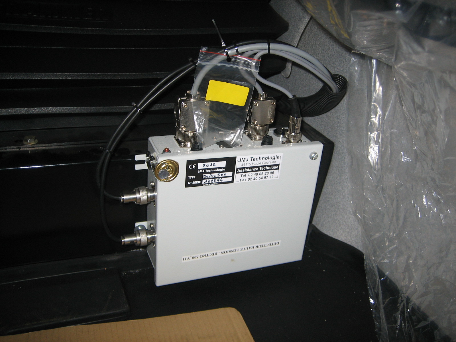 Système de prévention qui grâce à une seule antenne de détection sur le toit de la cabine du véhicule, indique la présence de la ligne électrique "haute tension" dans l’environnement de l’automoteur avec asservissement des mouvements de basculement et coulissement.