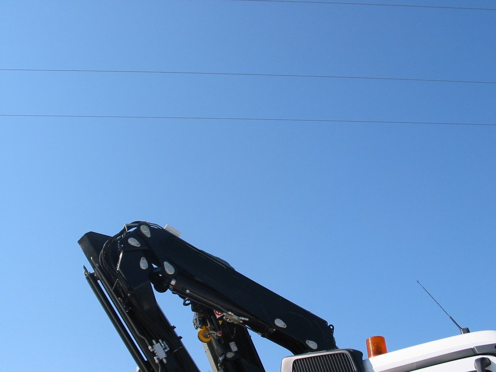 Système de prévention qui grâce à une petite antenne de détection placée sur le bras de grue avant le télescope, indique la présence de la ligne électrique "haute tension" dans l'environnement de la grue avec asservissement de tous les mouvements de déplacement (la fonction Marche-Forcée permet le déblocage).