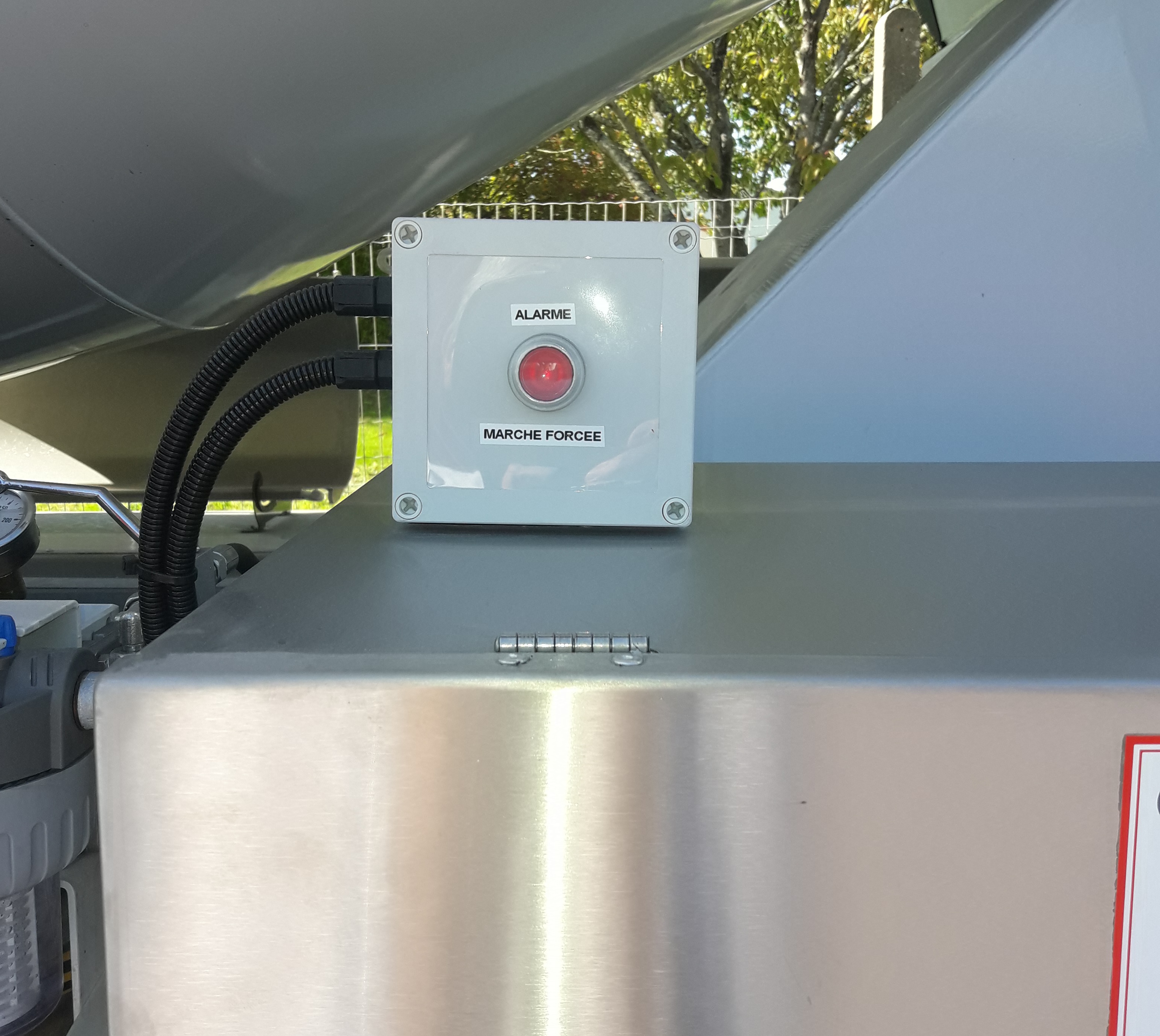 - Un boîtier de visualisation extérieure est situé dans l'environnement de la pompe. Il intègre la fonction marche-forcée.
