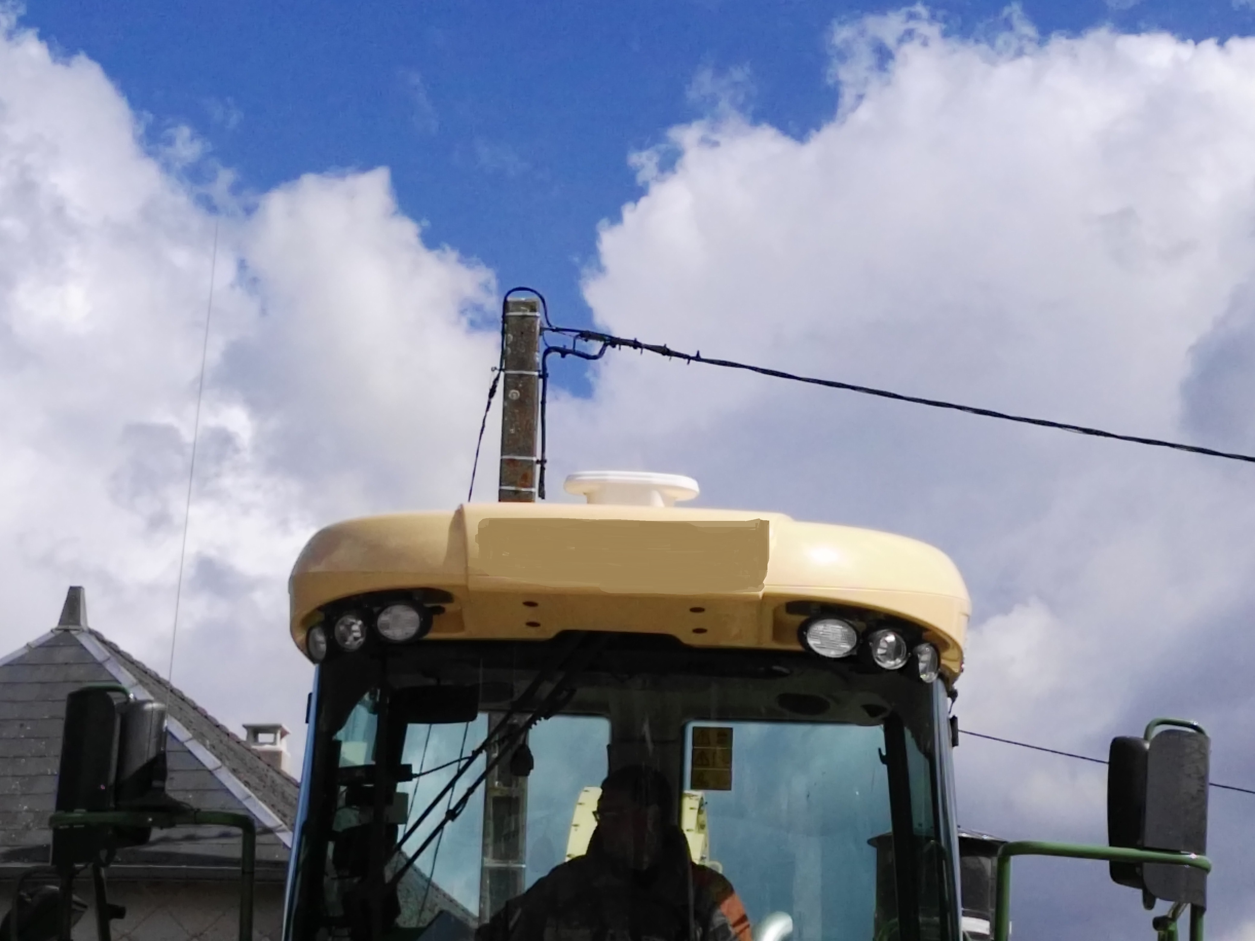 Systeme of prevention which with only one antenna of detection on the vehicle cabin roof, indicate a presence of the electric line "hight voltage" in the environement of a harvester with blocking of fall and slide movements .